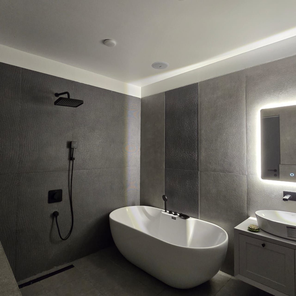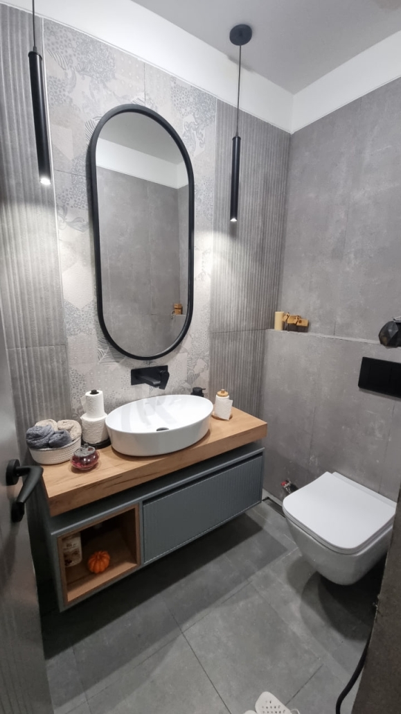 تمامی سرویس های بهداشتی در این پروژه به صورت صفر تا صد بازسازی و تمامی شیرآلات، کابین روشویی و توالت های فرنگی تعویض شد. تمامی سرامیک های سرویس ها با طراحی معماری و سلیقه کارفرما توسط تیم اجرای ما به صورت کامل نصب شد.