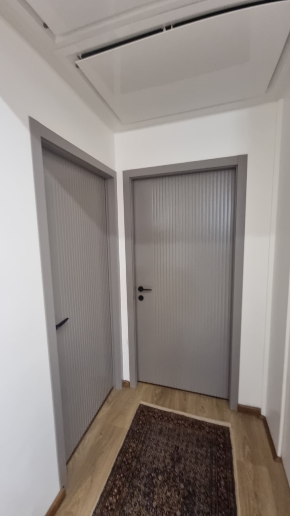 تمامی پنجره های این پروژه به دوجداره یوپی وی سی تغییر داده شد. همچنین درب تراس رو هم کمی جابجا و کوچک کردیم تا فضای کابینت ها و کمد تی بار تامین شده و جلوه بسیار یکدست و زیبایی به خانه آورده باشیم. از آنجایی که این خانه در کنار یک مدرسه واقع شده بود، پنجره دوجداره کمک بسیار شایانی در کاهش صدا و آوردن آرامش به منزل ایفا میکند و جزو الزامات بازسازی بود.